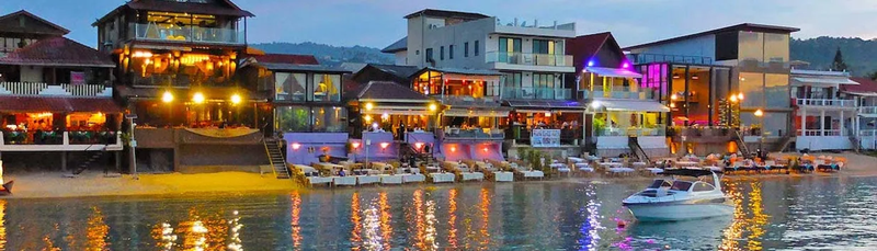 At night, the lights of Sairee Beach create a magical glow across the water.